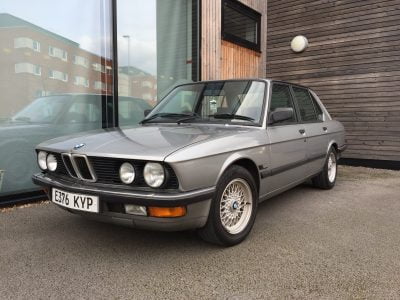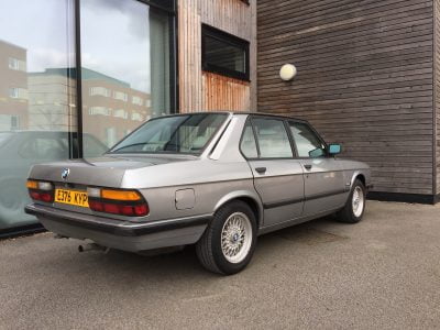 Got myself a big ol lazy BMW e28 525e Lux in late 2014. It’s a 2.7 auto and tuned for economy. It’s pretty slow but very smooth and comfortable.  I’ve wanted a sharknose BMW for ages and this one has been mostly sorted out already so I can drive it daily. A damp issue and electrical gremlin to sort out first (that was the glovebox light shorting…), then I’m going to drive it around for a bit.